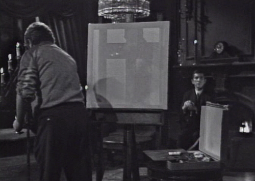 Sam sets up his easel at the Old House and gets to work, and he makes a lot of progress. It goes so well that Sam ends up painting all night. Then Barnabas hears a convenient rooster crowing, and realizes that it’s dawn. That rooster must be from the “family farm” where they keep all the cows. Where is this invisible farm? It’s got to be around here somewhere, unless that rooster is a ventriloquist.