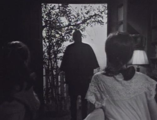 Then the lights go out, the French windows swing open, and you can see Barnabas’ silhouette framed in a flash of lightning. I wish I could say that we’ll pick it up from here tomorrow, but we’re actually going to jump back a couple minutes and do this whole scene again. Sorry.
