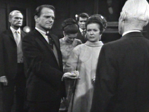 This is one of the very few on-screen weddings on Dark Shadows, partly because they can’t afford to build a church set, and partly because engaged characters tend to get strangled or imprisoned or shot with a crossbow before the blessed event can take place.