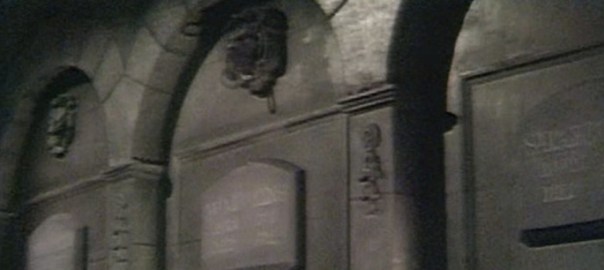 Here, I’ll show you. All last week, young David was trapped inside the secret room in the Collins mausoleum. He was brought there by a mysterious little girl named Sarah, who he doesn’t realize is the ghost of one of his 18th-century ancestors. She showed him the trick of getting into the secret room, so that he would see the empty coffin where Barnabas, who David doesn’t realize is a) Sarah’s big brother and b) a vampire, was chained up for 170-odd years until c) Willie let him out.