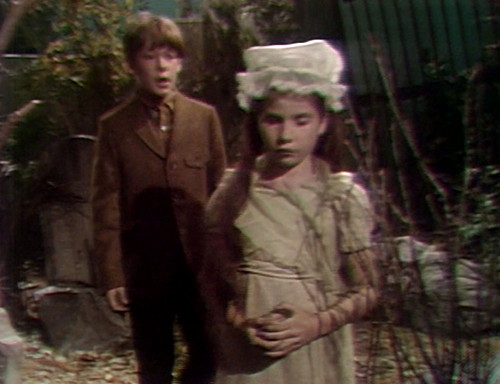 As the show has moved forward with color and increased use of chromakey, I’m remembering more clearly what captivated me when I was too little to understand the plots. A big part of it was the way things seemed like an eerie dream. Even (what I think are) the painted backgrounds and the clumsy use of chromakey to get a wider range of outdoor shots (like a couple of people standing in a different section of the cemetery in one episode) give the scenes a dream-like quality.