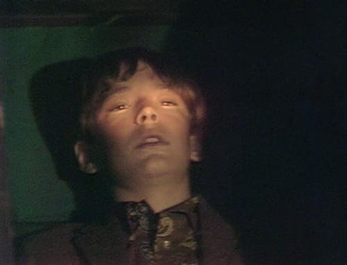 I’m not totally sure what that light source is that’s shining on David’s eyes. Barnabas and Willie are in a completely sealed stone room with no windows, and they don’t even have a flashlight. Within that room, David is inside a sealed wooden box, and somehow he’s managed to find his light. The kid’s a pro.