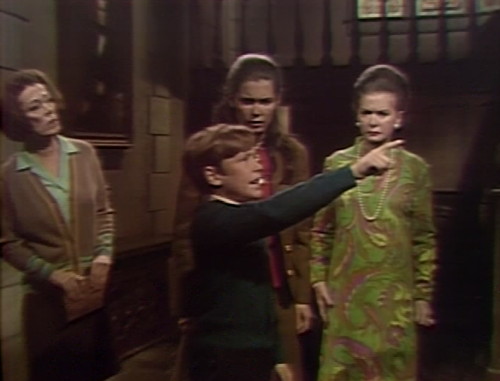 At the top of the show today, Elizabeth finds young David standing in the foyer, staring at the 18th-century portrait of Barnabas. She asks David what’s wrong, and he suddenly runs upstairs and slams the door. Perplexed, Liz looks at the portrait.