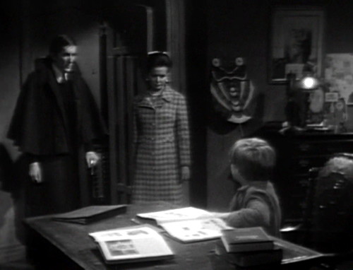 David starts shouting at the portrait, “I want to go back to Collinwood! Let me go! Let me go!” Liz rushes to his side, but David pulls away, and then runs upstairs to his room.