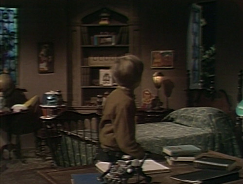 It’s no wonder he’s freaked out — this is the first time we’ve seen anything like this on the show. This is actually the first of many bats on strings, which are acknowledged in the closing credits with the delightful phrase “bat by Bil Baird”.