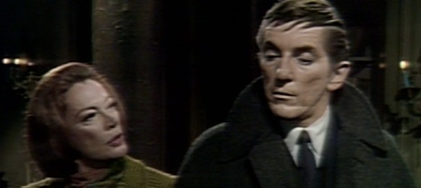 For the last few episodes, it’s mostly been Barnabas, Julia and Willie standing around in the Old House and discussing whether Barnabas should kill Maggie Evans or not. At the top of the show today, Barnabas has finally made a decision, and he’s on his way out the door — and there’s Julia on the doorstep, ready for another round of negotiations.