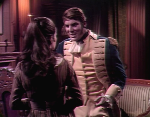 6. I’m finding it pretty unbelievable, the way they’ve written Vicki. She’s as dumb as a bag of hammers, but she goes around lecturing everyone. She supposedly had an irrational fixation on Josette Collins that rivaled Barnabas’s own pathological obsession, and yet now that she’s in the same house with the actual Josette, we aren’t seeing scenes of Vicki trying to buddy up to Josette or find out more about her — we aren’t seeing signs of Vicki at all. It’s true what everyone is saying — this is supposedly her journey, but where are the scenes of her being amazed at being in 1795? It’s like they’ve locked her up in the attic and they only let her out when they need someone to act stupid and smug. One really must wonder how the writers managed to turn a major character into a doorstop.