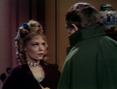 She’s currently passing herself off as Nathan’s sister, and she’s wrangled an invitation to stay at Collinwood, because that’s the kind of thing that always happens in soap operas and door-slamming bedroom farces — two genres that are heavy on the lunatic plot contrivances.