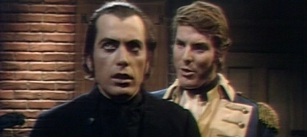 Here’s where they left off: Barnabas has finally confessed that he’s a vampire, and he feeds on human blood. Horrified, Joshua raises his pistol, and says, “Forgive me. Forgive me, dear son.”