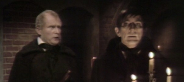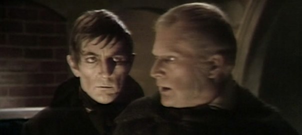 In yesterday’s episode, vampire-about-town Barnabas Collins was down at the docks, looking for a bite to eat. He was just about to feed on streetwalker Maude Browning, but she screamed and fought him off, and it attracted attention. He scrambled away, leaving behind his signature silver wolf’s head cane.