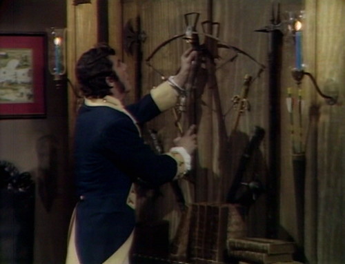 The crossbow shooting illusions, both the practice shot and the Barnabas-piercing shot, are nicely done. Frid gets that arrow placed in his mid-section in the couple seconds that it takes to cut to the crossbow and then back again. Nice work for a show shot in real time!