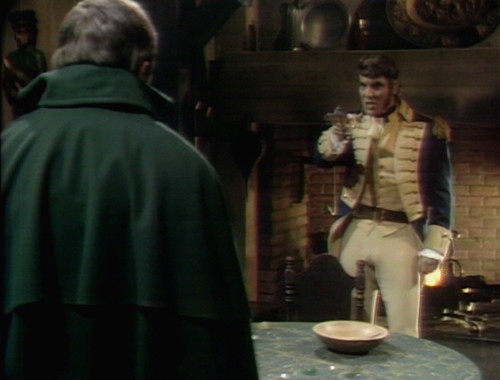 The showdown in the inn is oddly shot – I thought the glass-smashing came off quite well, but there is a lengthy undramatic pause beforehand, and the decision to stick to closeup reaction shots means we don’t actually see Nathan pull the gun, instead having to rely on Barnabas’s reaction to tell us what’s happened (even when they cut back to Forbes, the tight shot makes the gun less noticeable than it should be).