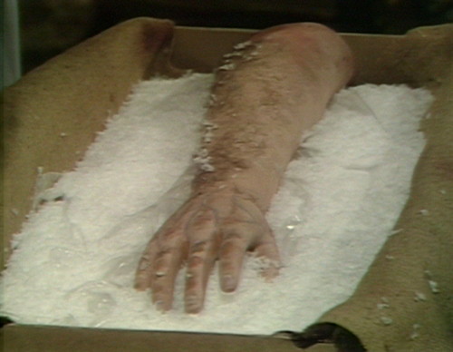 14. This cliffhanger scene unfortunately “treats” us to another one of Roger Davis’ petulant and irritating scowls. He reminded me of a little kid who deserves a time out, or better yet, a spanking. The bad news is we get another chance to see it during the next episode’s opening recap. On the plus side, the shot of that severed forearm is very effective.