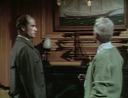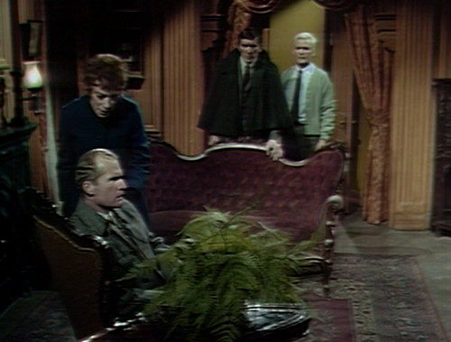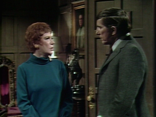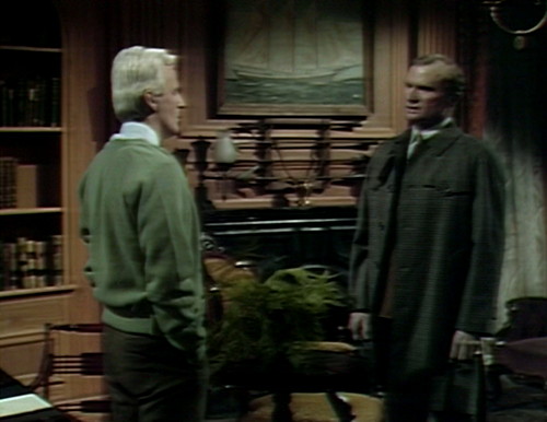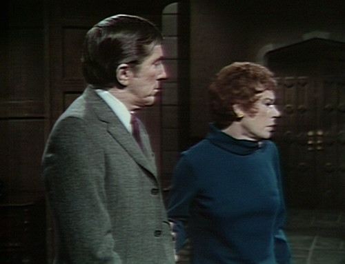 So here’s one of the tricky secrets of television. In the scene, Barnabas and Julia are both terribly worried about Roger, who snuck out of the house on Friday in the company of a sinister oil painting. (Don’t ask. It’s a whole thing.) Roger’s sister Elizabeth is also terribly worried, which just adds one more item to the list of things that Barnabas and Julia are terribly worried about.