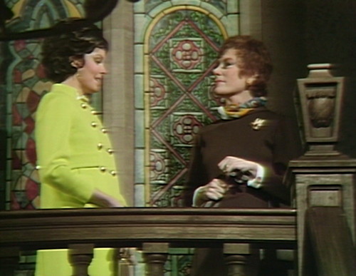 4. In universe, it does make sense that Cassandra would try to ingratiate herself to Julia. She’s probably aware that there was some friction between Julia and Barnabas in the past and perhaps hopes to make an ally of Julia against him. Never stated on screen, of course, but I think it works. On a more general level, Cassandra probably is trying to make friends at Collinwood because she knows Barnabas will move against her at some point and she could use the help. Of course she ultimately aliennates every one. But that’s because she’s crazy.