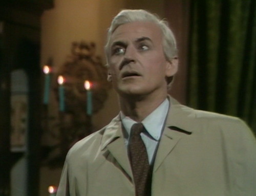 As for the Dream Curse, it does have its moments. The best parts are when we see what the effects of not telling the dream has on the characters, in particular Mrs. Johnson and the way they try and fail to keep her from telling it to David, and how she hides outside the Old House waiting to relieve herself as she finally follows David back to Collinwood. That mixed look of hopefulness and pent-up anxiety as she stumbles across the front porch after David is priceless. Another memorable scene, probably the best of the lot, is when Willie climbs in through the window of Carolyn’s room in desperation. I think that scene featured one of John Karlen’s best acting moments as Willie Loomis. And yes, in the stills shown above, even when Lang is not speaking he sure does gesture loudly. Even his body language is spoken with capital letters and exclamation points.