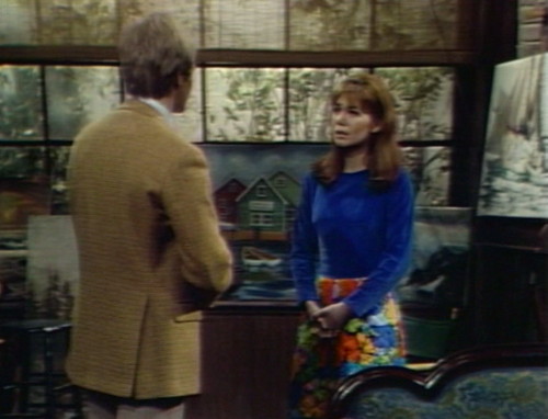So, if you’re a doctor in Collinsport, beware the quilted skirt of Maggie Evans. (I don’t recall it ever showing up other than on those two occasions but they may have.)