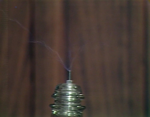 So that’s the overture; now, on with the show. Lang starts up the machinery, and the world comes alive with flashes and zaps and Frankenstein switches. The atmosphere is entirely electric.