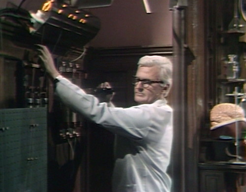 We cut back to the lab, where Julia is up to her neck in mad science. She’s wearing a brand-new lab coat — which is white this time, instead of powder-blue. Even the wardrobe is recasting.