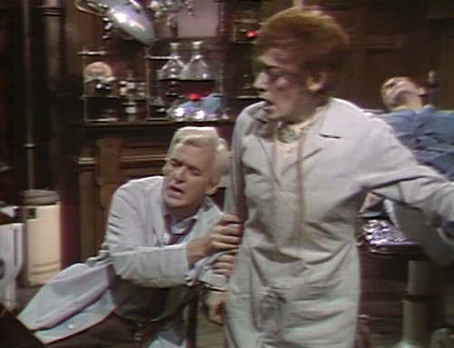1. Yes, by this point Dark Shadows is no longer a soap opera in the standard traditional sense. It is now a horror series, where instead of basing the show on emotional effect, they are instead banking on the thrill factor. That’s why we don’t care about the sudden disappearance from the lab of Dr. Lang’s body, which I didn’t even think to notice while watching this part of the series. Because the viewer has no emotional connection with Dr. Lang. He was just a mad scientist. He was entertaining, but not a character with whom we could identify. If he dies, fine. If his body disappears without so much as a comment, so what? It was fun to have him along, but we are more interested in the experiment than the scientist who conceived it.