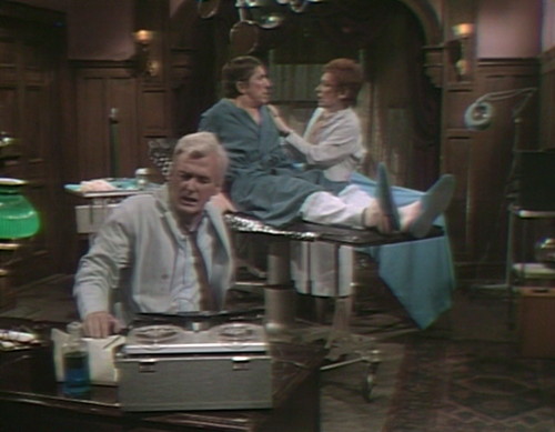 Somehow, invisibly, Barnabas and Julia reported the sudden death of a prominent local doctor, and arranged for his body to be collected from his secret murder lab, without anyone noticing the rotting corpse-monster on the other side of the room.