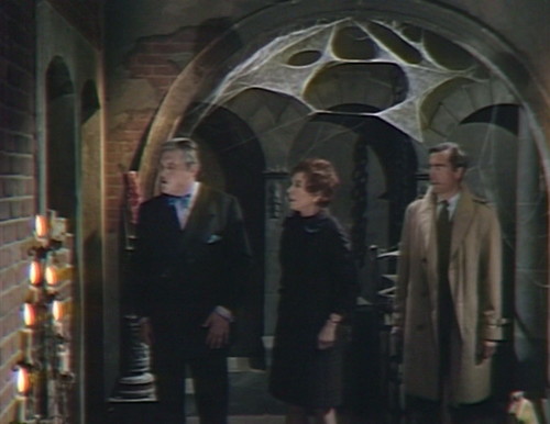 Then the wall behind them shatters, revealing Trask’s skeleton, chained up where Barnabas left him. It’s a marvelous image, with a perfect mix of Dark Shadows’ three fundamental concerns — death, time and architecture.