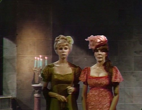 And get a load of these two, who bring their own brand of morose spectacle to the proceedings. These are two streetwalkers that Barnabas killed in 1795. They’re not the same actresses who played the original parts, not that it matters, so imagine the casting call. Wanted: Two dead 18th-century women of easy virtue for ghost trial. Bring sheet music, and be dressed for not very much movement.