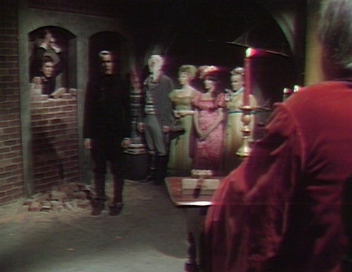 And so it just goes on, for two full acts, and it’s fantastic. This is as close as Dark Shadows gets to live theater — one set, shot almost exclusively from one direction, with weird costumes and lighting changes and lots of big entrances and exits. You could do this whole sequence as black-box experimental theater, and it really wouldn’t feel substantially different.