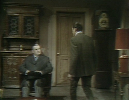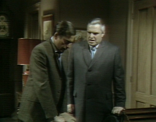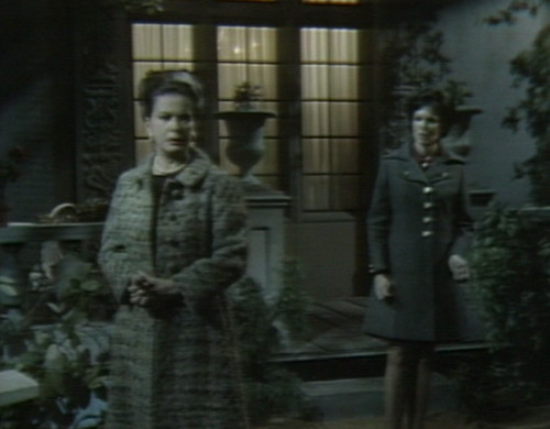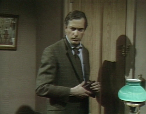 I believe this is the scene that has one of my favorite lines from Dark Shadows, and it’s a really snarky one from Prof. Stokes directed at Cassandra. I don’t have the script in front of me, so I’ll have to paraphrase. But it’s something like this — Stokes says that he’s not interested in the painting of Angelique anymore because he realizes now that it’s a copy; he has seen the original. And he’s looking right at Cassandra when he says that. He and Cassandra then exchange slight smirks in that they both know the true meaning of his words but nobody else in the room does. It’s actually pretty funny, especially in light of their exchange of smirks.