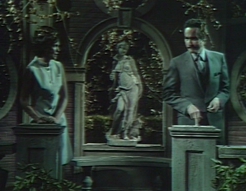 3. Maybe I’m reading too much into the set design, but in one of the photos Angelique and Nicholas are sperated by a statue of a Goddess (I assumed Venus). Wouldn’t it be awesome if it was Venus and that statue between them was to represent Angelique’s love for Barnabas blocking her efforts at villainy? More likely that the shot just looked better composed with the statue in the middle but how awesome if it was meant to be subtle symbolism! 🙂