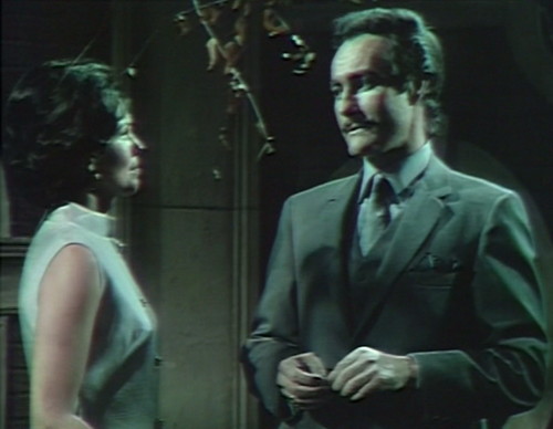 7. I’m enjoying watching Nicolas take Cassandralique down a peg or two. I got frustrated in 1795 when she seemed to be invincible, and even returned as a giant floating head once Barnabas finally killed her. A blooper note, I think Alexandra Moltke broke character at the end of Act 1, when she and awful Roger Davis were talking in the drawing room. She and Jeff are in a very serious discussion, and as they go to commercial she turns her head slightly and grins.