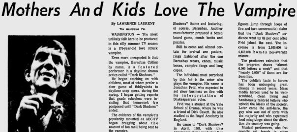 “Mail for the show recently has been running to almost 6,000 letters a week since Barnabas soared to fame, with Frid himself receiving nearly 5,000 of that total.”