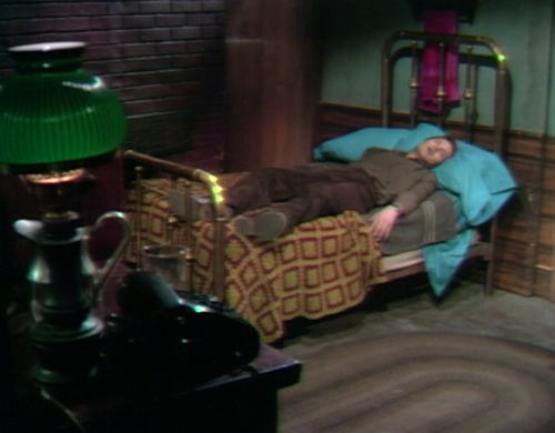 Now she’s having a relapse, because Joan needs another few weeks to do a play in Chicago. I have no idea why they feel the need to explain Liz being off screen this time — three months needs a rationale, but three weeks is routine. The budget only allows for five or six actors per episode, so if a character doesn’t have a front-burner storyline, we don’t necessarily see them that often. If there was ever a show where a character could wait quietly off camera for a few weeks, Dark Shadows is it.