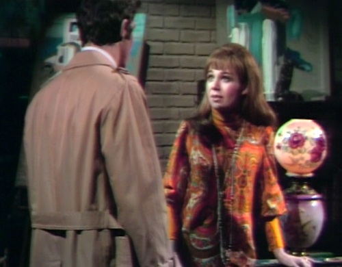 As a kid viewer (11 in 1968), I was always disappointed when they cheated on the transformation scenes, as in this episode. I wanted the dissolve, not Briscoe wearing the werewolf glove. What I didn’t realize at that time was how complicated the whole thing was, since, to do a dissolve, Briscoe and Stevens had to be on two different sets. This meant either replacing Briscoe with Stevens off-camera prior to the dissolve, or otherwise disguising the fact that two sets were being used (by closing in on Briscoe’s mug as he changes). The other alternative for a live dissolve would be duplicate sets. On a show that could barely afford originals.