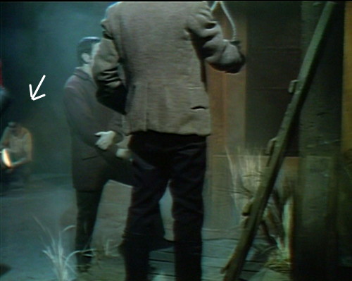 There’s a close-up on Ben as the scene changes, and Barnabas and Peter hurry from the courtyard set to the Collinwood study. Ben has some lines to fill up the time, but not quite enough — there’s a pause after he’s done, and he quickly peeks at the camera to see if it’s still on him.