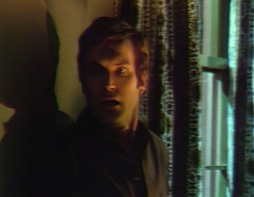 There’s a vague suggestion that he’s supposed to be writing something. He told the hotel clerk at the Collinsport Inn, “I sometimes move around and act out what I’m writing,” but then we all got distracted by the brutal murder of the hotel clerk, and we never got around to hearing any more details about what Chris does for a living, when he’s not brutally murdering hotel clerks.