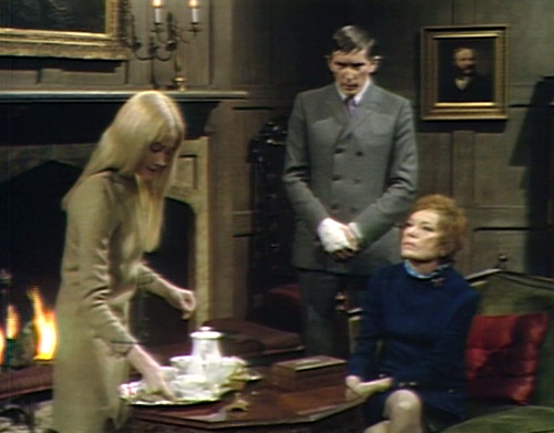 Occasionally there are moments of unintended humor in the dialogue, like when Vicki goes to Collins family lawyer Richard Garner to find out about former Collinwood butler B. Hanscombe: