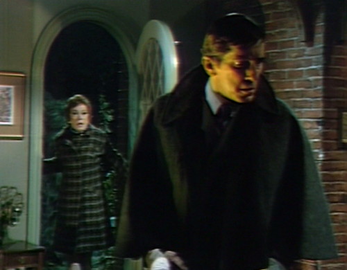 And then, as a result of Vicki’s secret mission to Bangor to see Richard Garner, when Liz can’t determine Vicki’s whereabouts, there is the moment in the drawing room where Roger is standing by the liquor cabinet holding a drink when he says to Liz: