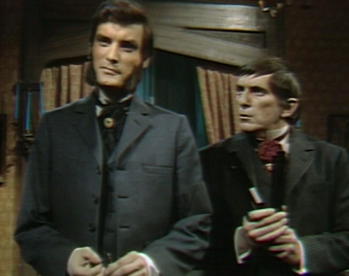 8. They may have given Barnabas back his “bite” in returning him to the role of vampire, but what is missing in this 1969 retread of his 1967 “arrival” at Collinwood is his range. That is, his gifts as a Shakespearean actor are being wasted so that instead he can stand hapless before the point of a sword as Quentin puts on his histrionic show as guardian of the estate, or being the straight man in Carl’s practical joking.