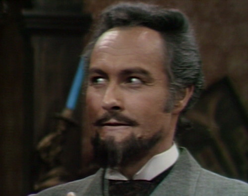 Sam Hall seems to like “film noir” (one of his first episodes featured Jerry Lacy as Bogart, after all). Now we see the series firmly settling into “film noir” conceits rather than the rather staid concepts of “good” and “evil” that directed the series originally. The 1897 cast is a straight out of film noir — everyone has an angle, an agenda. Quentin comes off like Mike Hammer in KISS ME DEADLY in this context — an outright bastard in a different milieu but among pompous assholes, pious spinsters, deranged practical jokers, Satan-worshipping lawyers, and bloodsucking vampires, he’s almost an audience identification character. This helps him, I think, escape the Nathan Forbes spiral into pantomime villain — that and we like seeing Quentin manipulate this Collins family, and the natural chemistry between Selby and Hennesy also warms us to him.