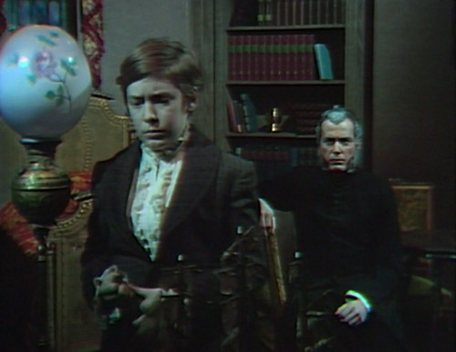 So let’s compare that with Reverend Trask’s meeting with Jamison. Trask is talking to Judith about sending the boy to Worthington Hall, when Jamison bursts into the room, declaring, “I’m not going to your school, or any other!”
