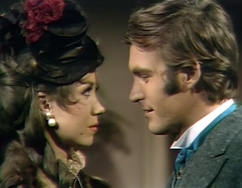 And here — when he’s returning to Collinsport as a new man, ready to take charge of a storyline — they explicitly inform us that this woman is being paid to hang out with him. Paid well, too — with furs, and jewelry. It doesn’t reflect well on Tim’s charisma.