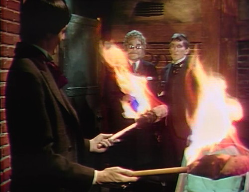 But Abraham Howell has something to say about this. He pays the pair a little visit, exhibiting all the usual Dark Shadows haunted house tricks — the candles blow out, the occasional furniture tips over, and a mysterious wind ruffles the pages on Petofi’s music stand. Incidentally, I don’t know what instrument Count Petofi plays with his grotesque gnarled hand, but oh, how I would like to find out. Attention, Big Finish: please hurry up with that Count Petofi: Behind the Music special that you’ve been sitting on all this time.