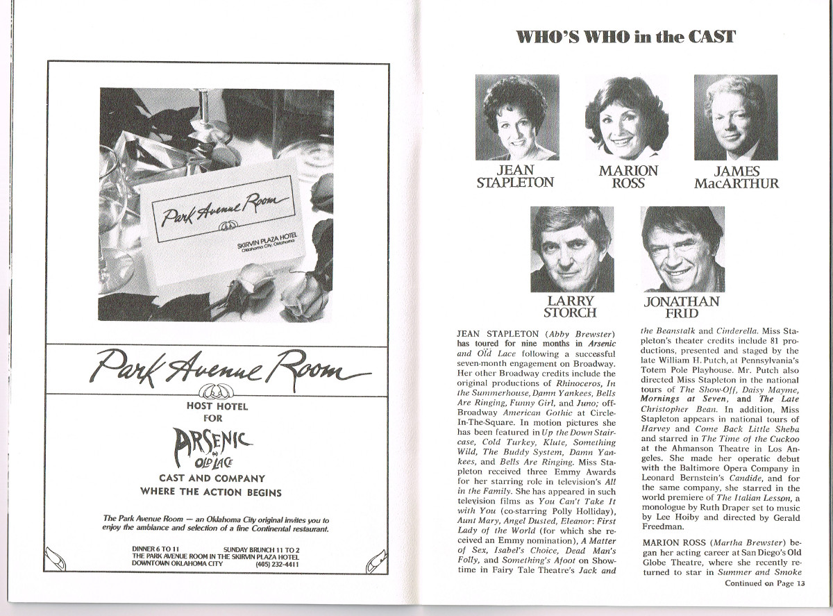 1. Whoever made up that playbill obviously knew nothing of Dark Shadows, or Arsenic and Old Lace for that matter.