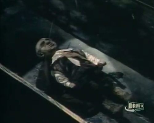 Well, the first thing you hear is a thunderclap out of a blue sky, and the first thing you see is a mute, bald Tor Johnson-type henchman in a brown leather vest, stomping toward an old ruin of a castle, lugging two barrels of dry ice. Which I love.
