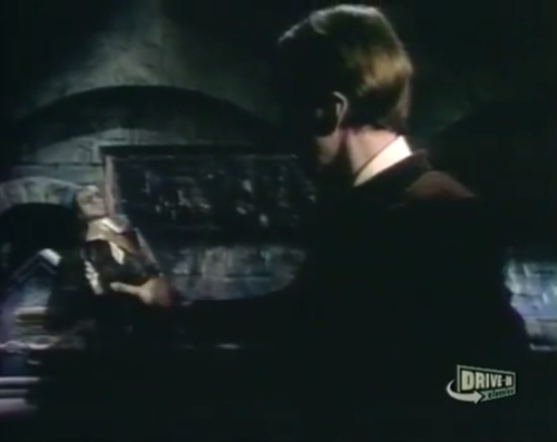 It’s not clear what she’s up to, this mysterious medico, and we never really find out; she’s only on this set for about fifty seconds total. Dark Shadows did this kind of thing too, in the pilot episode — splash out on sets and outdoor filming and day players, just to pretend that they had a budget.