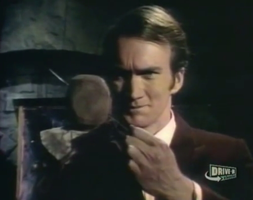 The thing that breaks my heart about this image is that it feels like they wrote down a list of all the elements that make up Dark Shadows — “vampire” is at the top of the list, obviously, and then haunted house, cemetery, witches, werewolves, time travel, and so on. Then they figured, we can’t do a vampire, because it’s too obvious that we’re just copying Dark Shadows, so they crossed that out, and then the same for ghosts, and cemetery, and finally they got to dry ice, and said, That’s it! We’ll start with that.