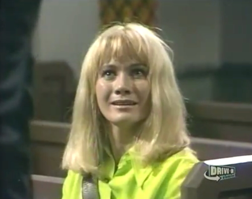 “You mean, making the church scene?” Holly says, removing the shades. “Forget it, reverend. I’m not resting. I’m not praying, just resting.” So I guess they don’t do retakes on Strange Paradise, either. She stepped into that one eight words into the role.