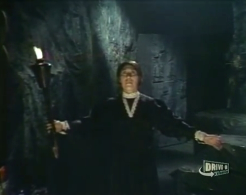 I know that there are aspects of this show that have some appeal — for example, I’m really enjoying Colin Fox’s decision to play Jacques as an evil gay eight-year-old narcissist, hopped up on Sugar Smacks. And as a lifelong fan of both Dark Shadows and Doctor Who, I absolutely understand that it’s possible to love a flawed television show. But this moment — a two-minute straight-to-camera denunciation of a villain, without giving us a single example of his villainy after two episodes — this is bad television.