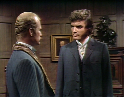 Edward reminds Quentin that Angelique was victimized by Barnabas, and Quentin snarls, “Oh, that’s right. So — so diz, huh? Well, brother, may that be as it is.”